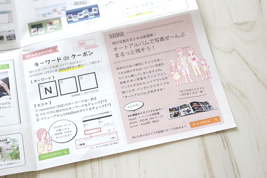 季節ごとに4色カラーで展開 誌面企画もオリジナル 企業ニュースレター 季刊誌企画.ページ構成、グランドデザイン、イラストフォトブックサービス商品の発送時に同梱される季刊誌ニュースレターの制作。デザインをはじめ、誌面の企画内容も1からご提案させていただきました。
